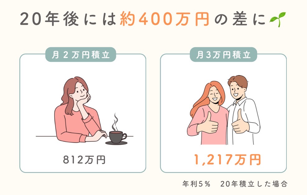 - 生活費を1万円減らせると将来の資産は、400万円増える