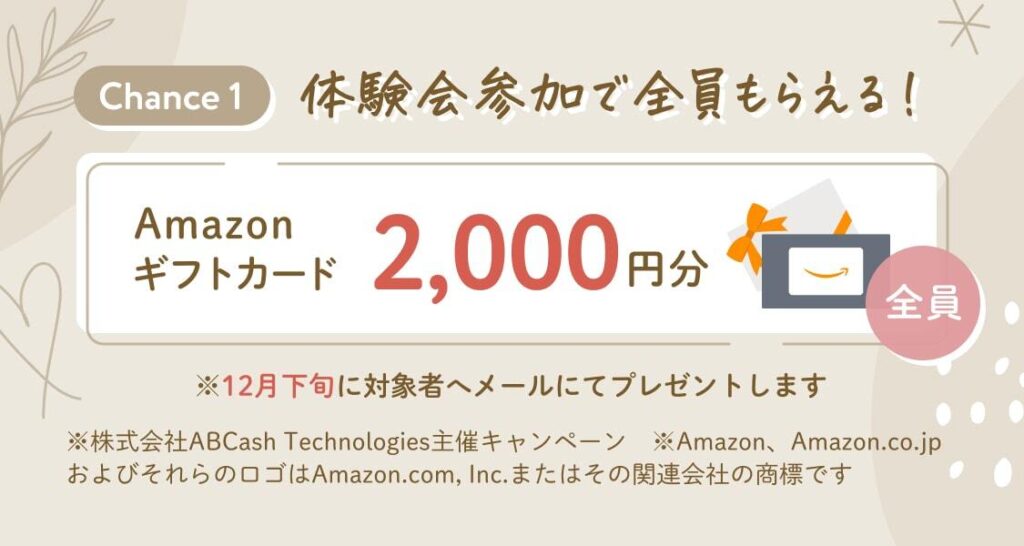 ABCashの無料体験に参加するだけで豪華なギフトをプレゼント🎁