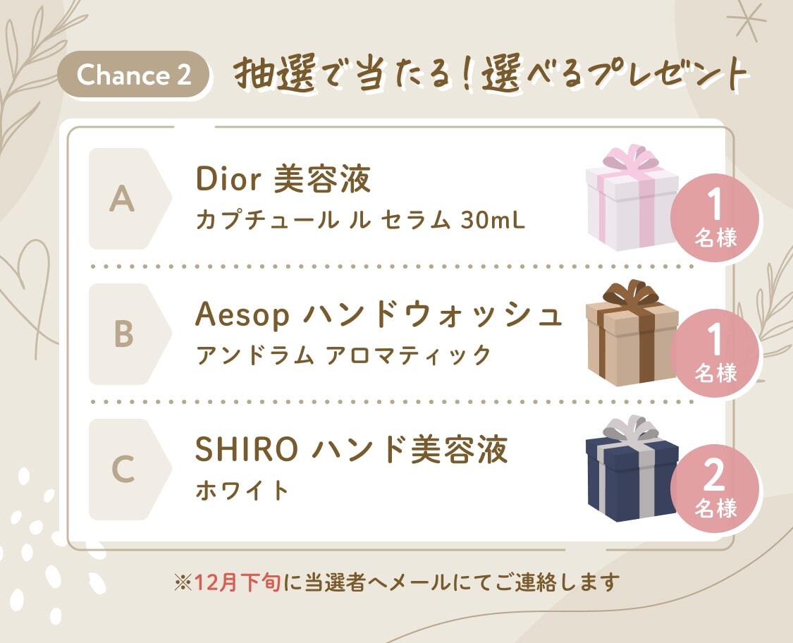 さらに!フォロワーさんと選んだ…Diorの美容液やAesopのハンドソープ、Shiroの美容ハンドクリームも抽選で当たる🎯