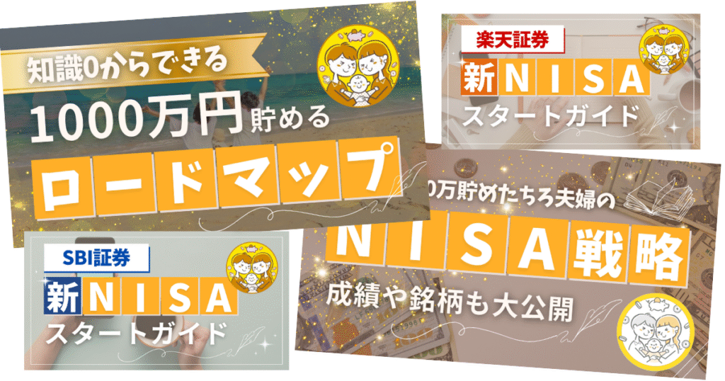 4年で1800万円ためたヒミツがギュッと詰まった、1,000万円ロードマップや我が家のNISA攻略ガイド、楽天・SBI証券のNISAスタートガイドをプレゼント🎁