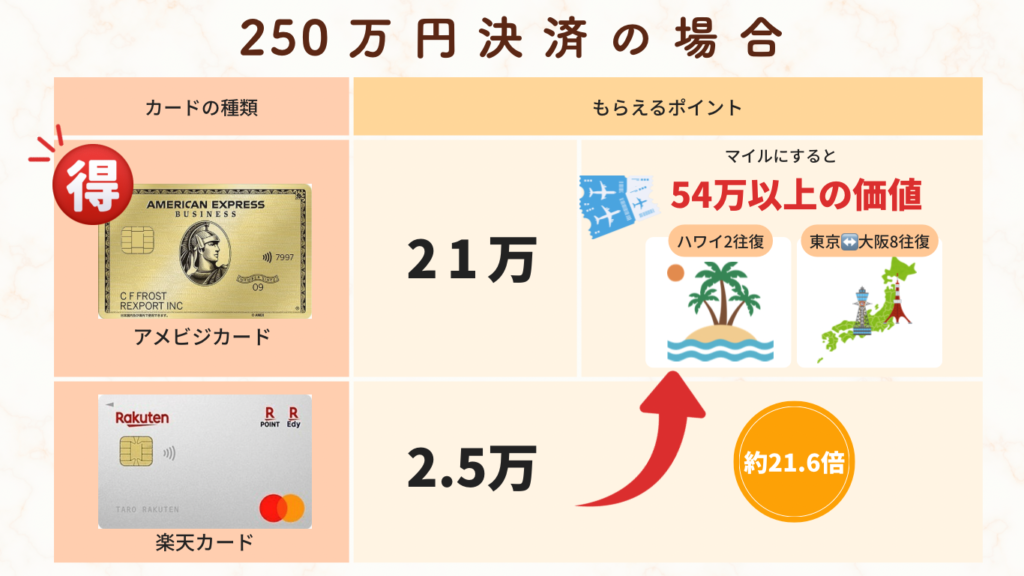 もちろん、250万円以上決済できたらもっとお得になるから、狙えそうな人はチャレンジしてみてね!