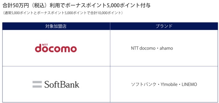 | 6ヶ月以内に 対象加盟店で最大25万円 | 25,000 ※5万円利用ごとに5,000 | 25,000 ※5万円利用ごとに5,000 |