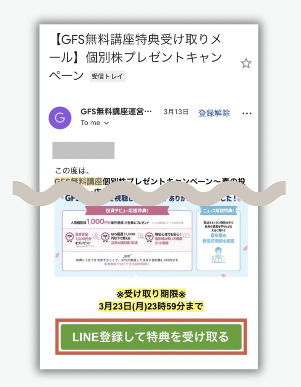動画をみた後に届く👆のメールからLINEに登録(登録済の方もOK)、アンケートとクイズに回答したらLINE上で受け取れるよ✊