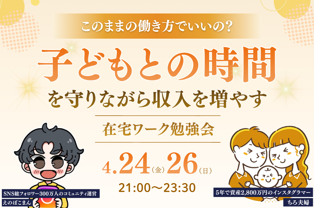 そんなママへ!在宅ワークの勉強会を4/24(金)・4/26(日)に行います