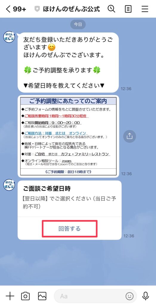 ライフプランの相談申し込みは、LINEで簡単!最短3分もあればサクッと完了するよ💡