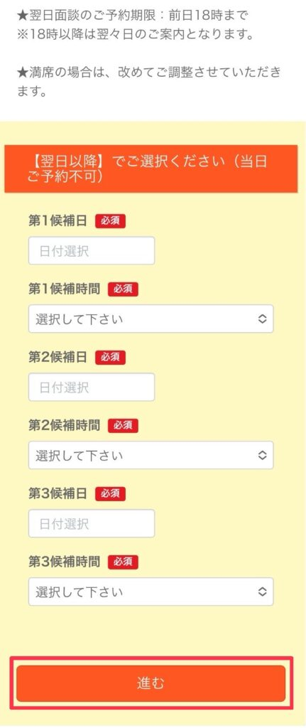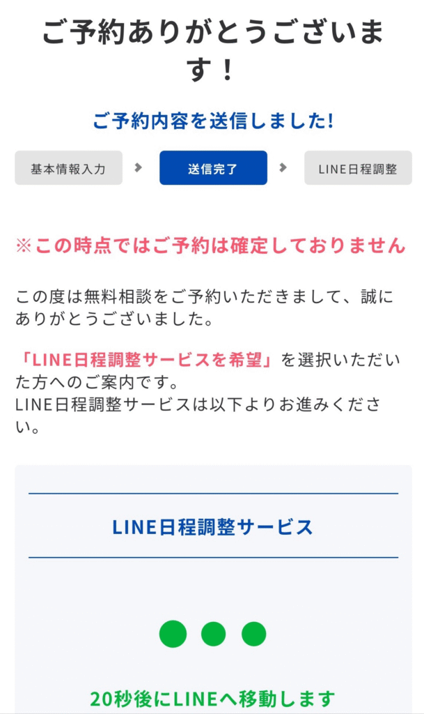 公式サイトから日程調節する旨の連絡が来たら予約OK!