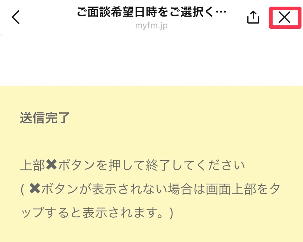 送信して右上の✖をタップ