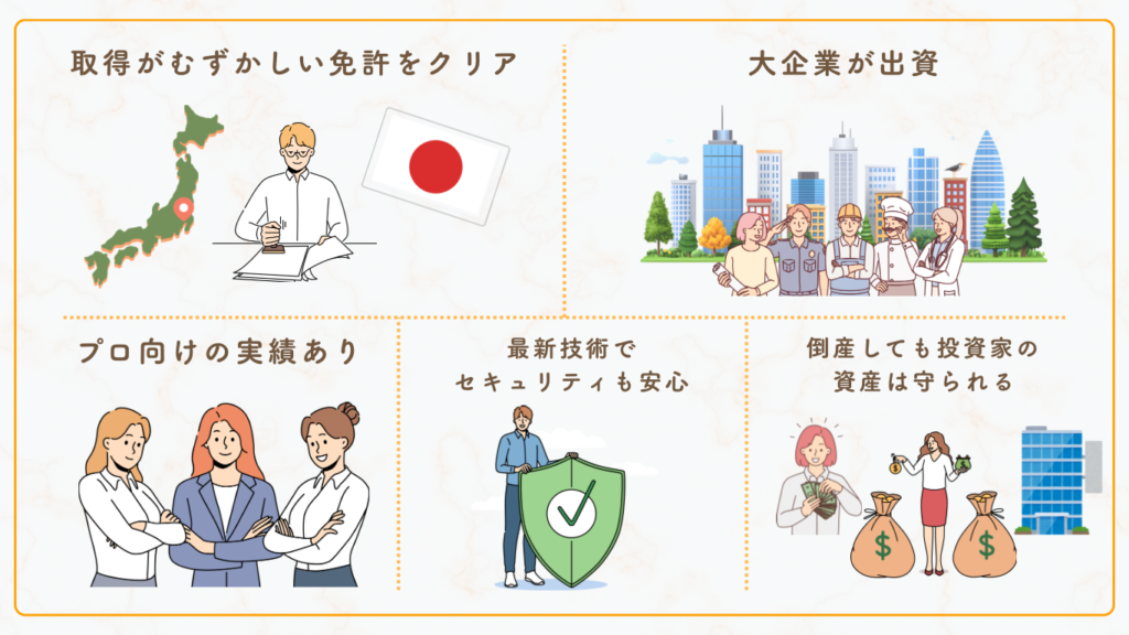 実際、運営企業は関東財務局長(金商)第3471号という登録番号も持っていて、証券会社や銀行と同じように国のルールの下でサービスを提供しているよ!