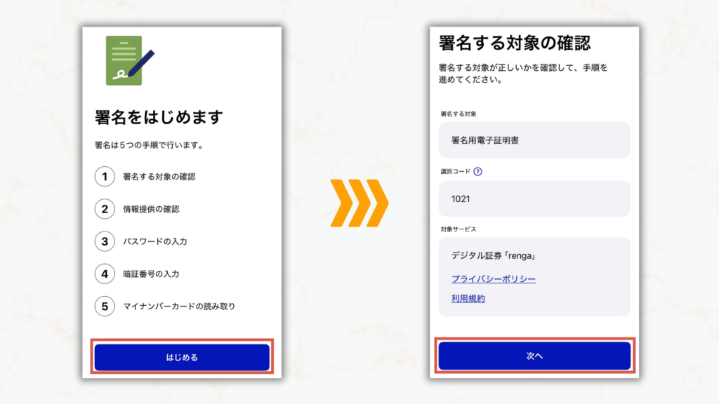 「許可」をタップし、署名用電子証明書のパスワードを入力