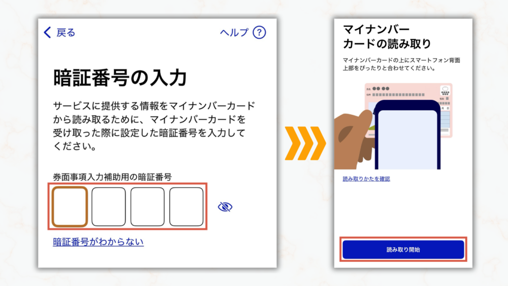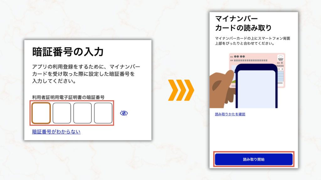 暗証番号の入力をして、マイナンバーカードの読み取りをしたら設定完了!