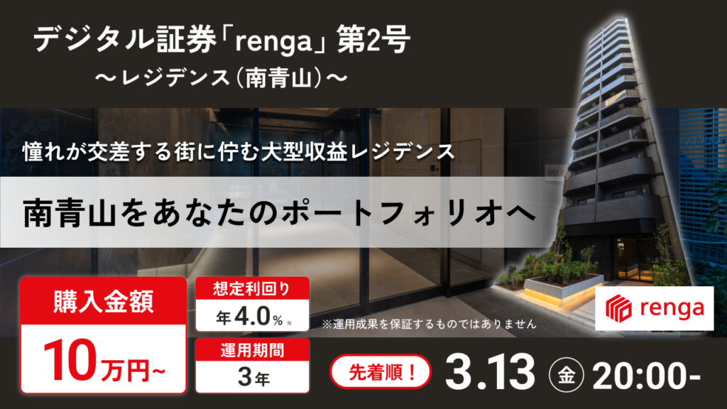 今回の【4,000円分のアマギフがもらえる投資応援キャンペーン】対象ファンドは、3/13(金)から募集開始される第2号ファンド(南青山レジデンス)🏢