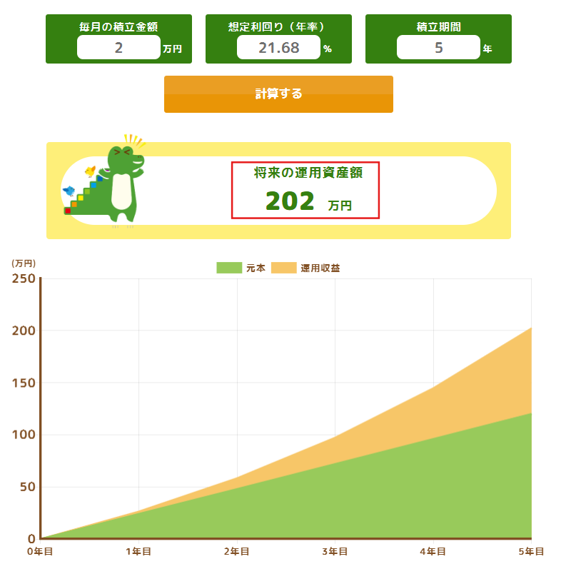 👇ウェル活で浮いた2万円をオルカンに5年間投資したら…