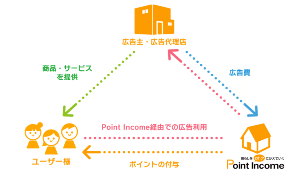 - 企業:広告費としてポイントサイトに報酬を支払う