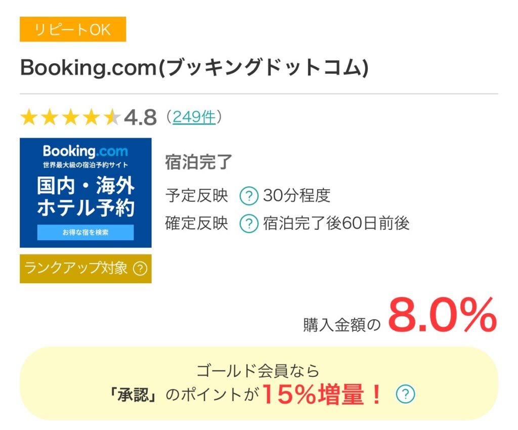 じゃらんやブッキングドットコムなど、有名どころはポイントサイトに掲載されているよ!