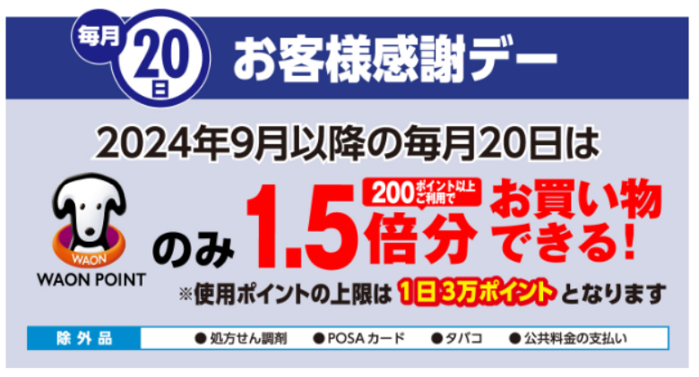 対象外商品(処方箋、酒類など)もあるので要確認